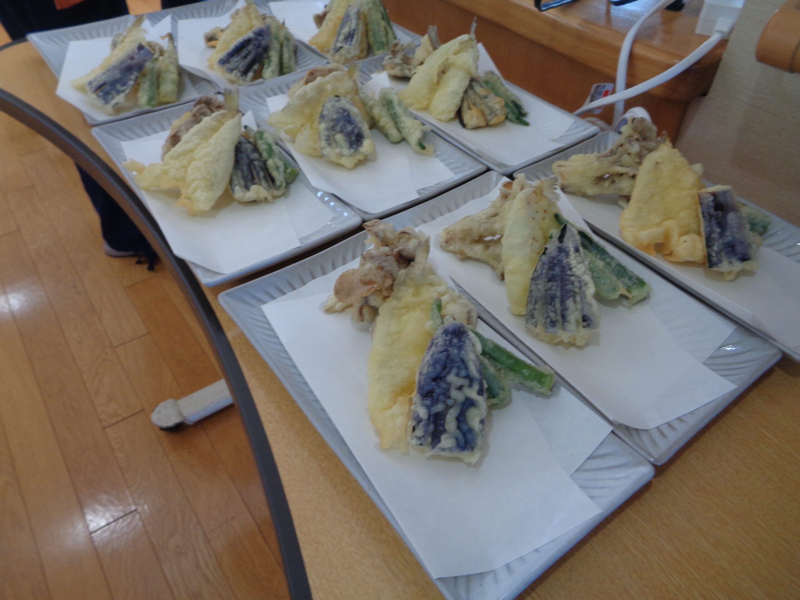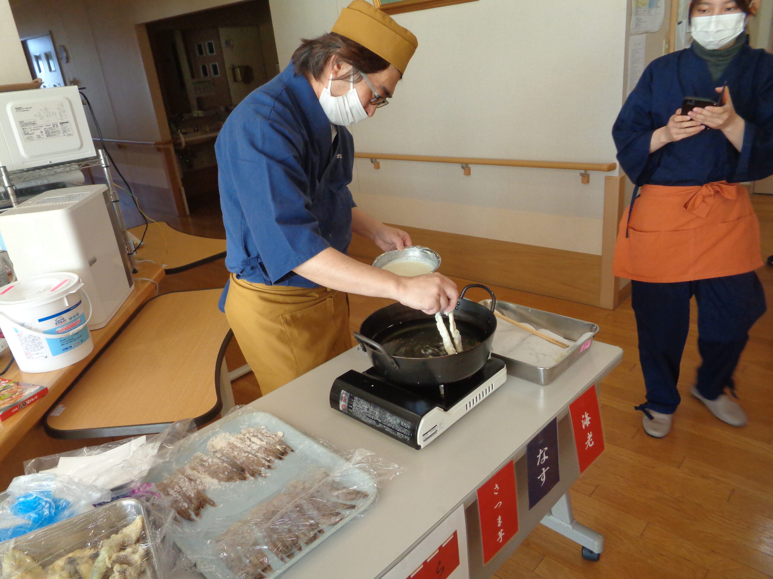 利用者様の目の前で天ぷらを揚げて頂くというパフォーマンスを披露して頂きました🍆