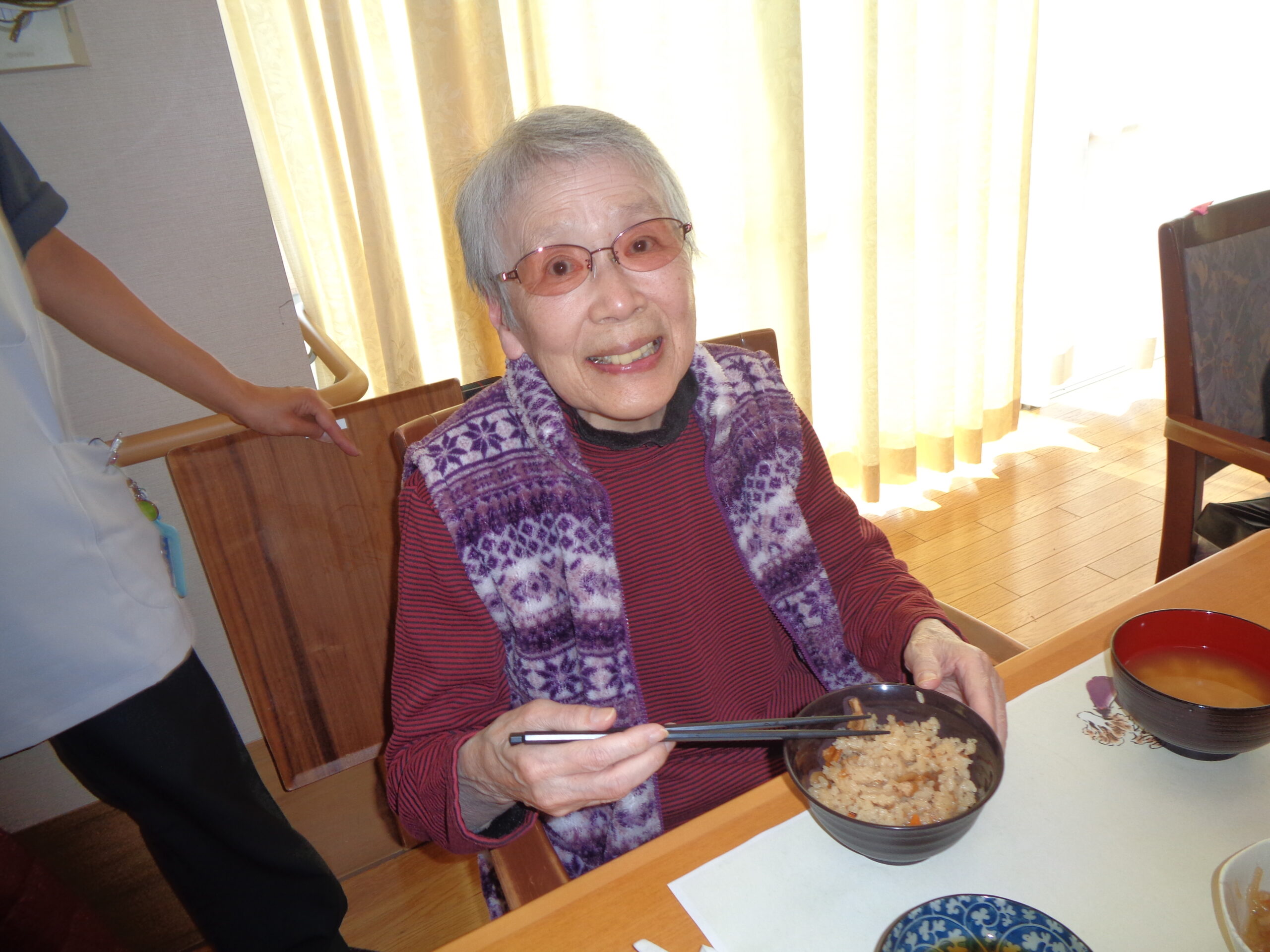 職員が炊き込みご飯も作り、美味しい和食を召し上がって頂きました。