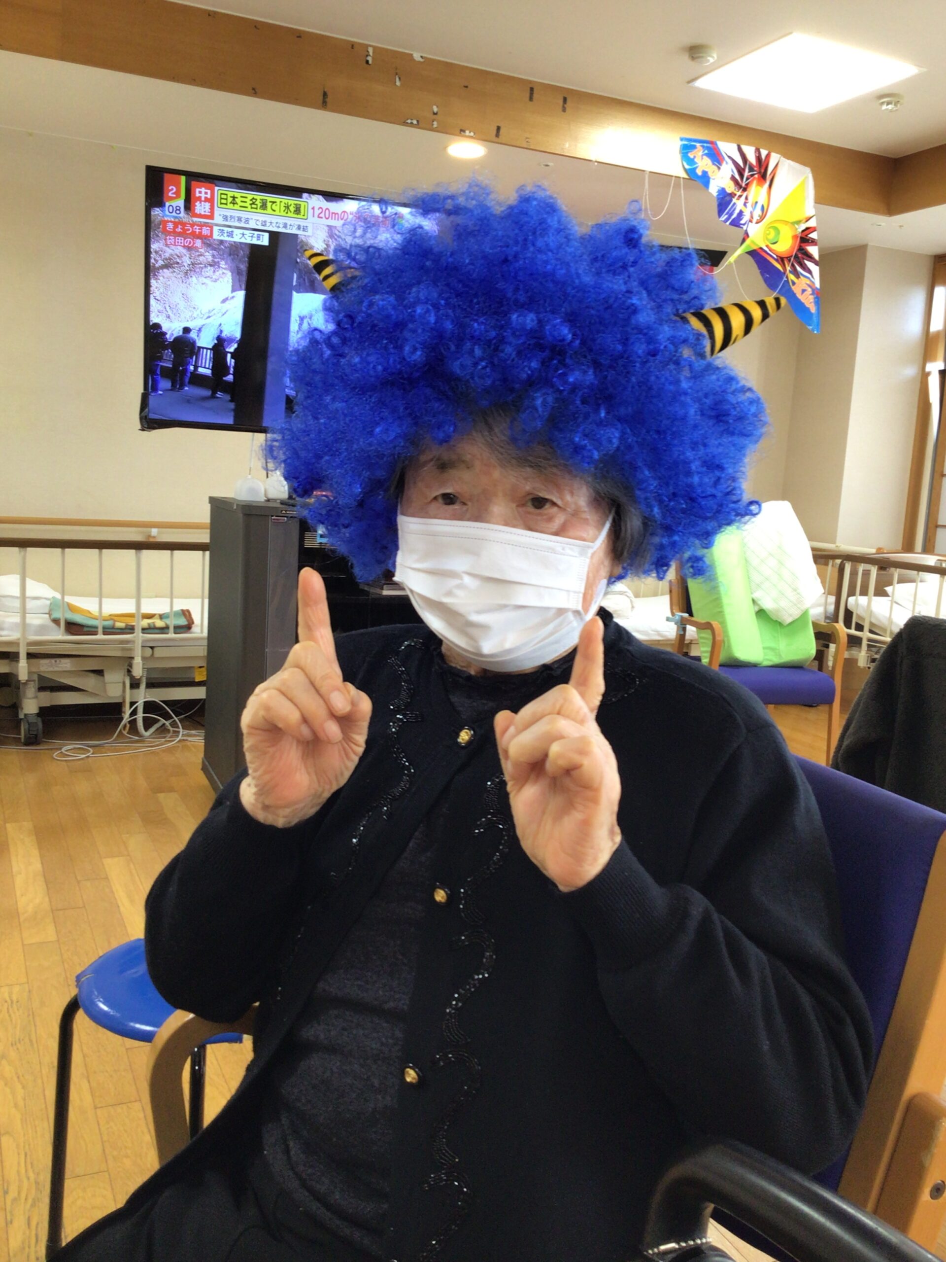 せっかくなので皆で鬼のカツラを😊