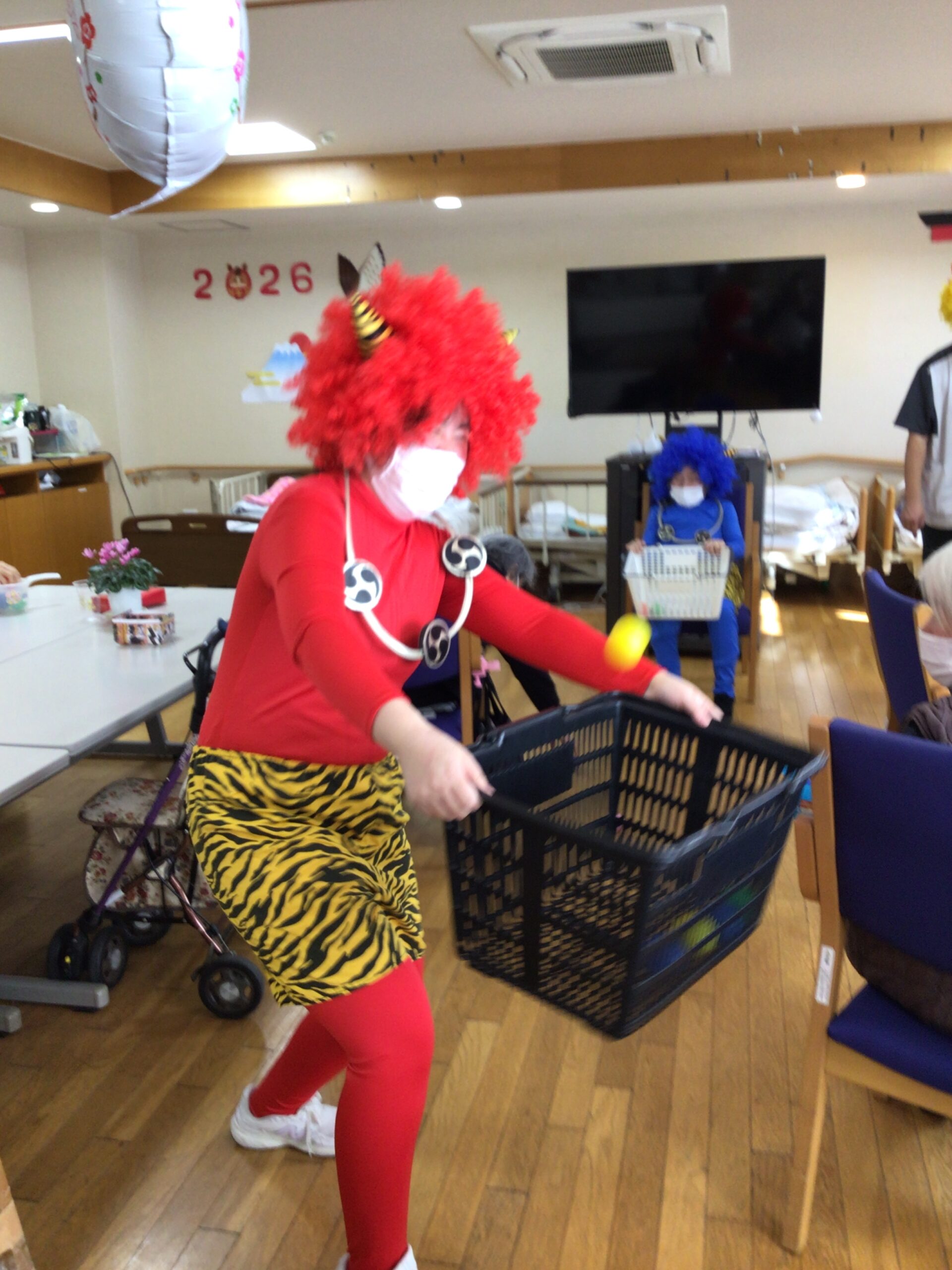 なんと今年は職員ともう一人、利用者様にも鬼になっていただきました!