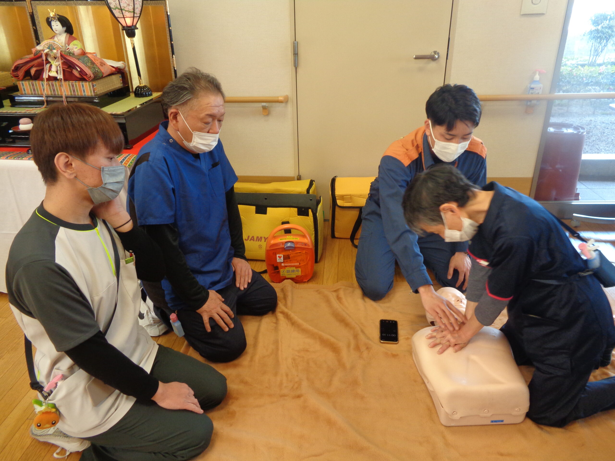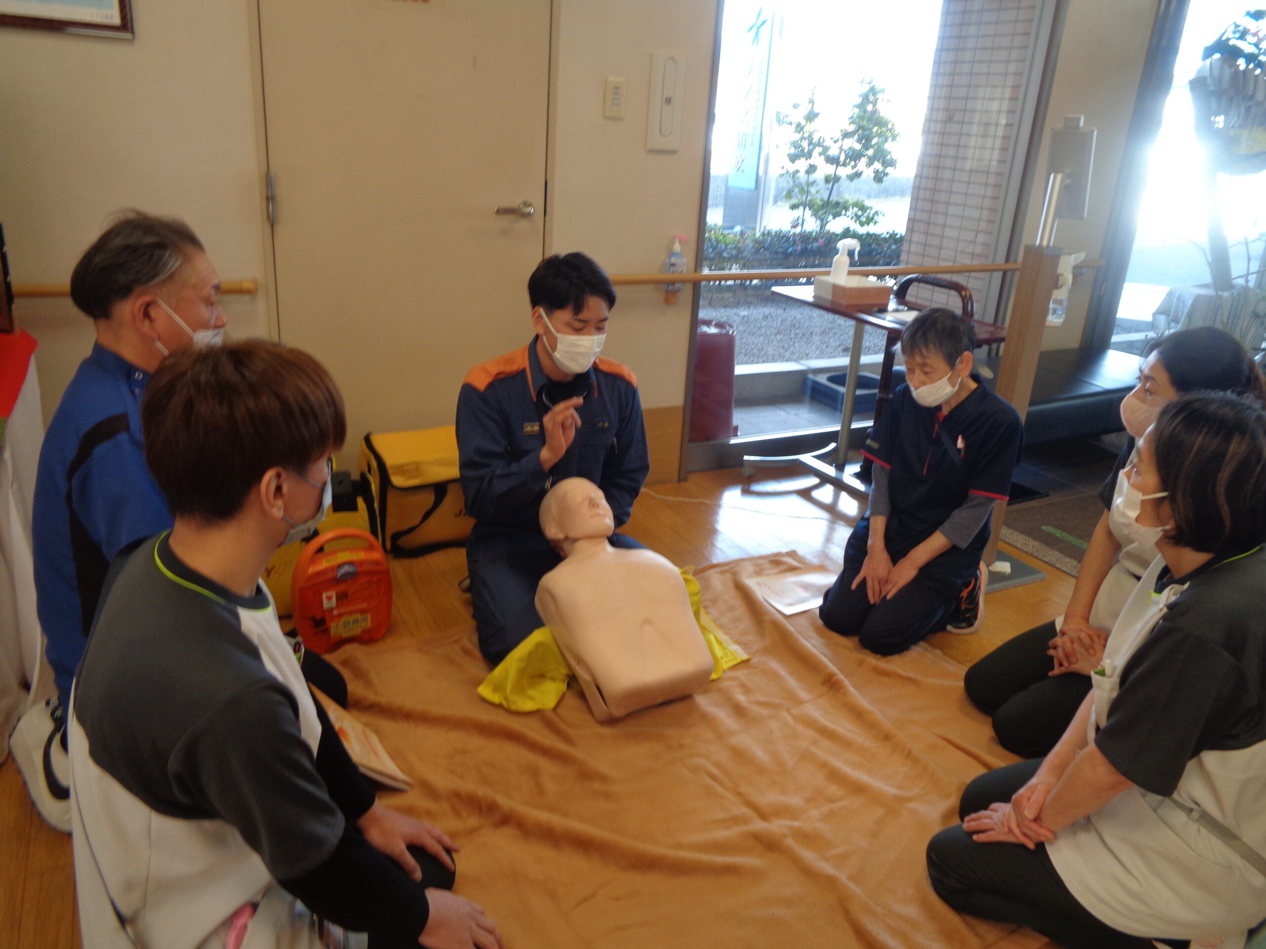 万が一の急変や事故に備えて職員間で対応策を学びました。