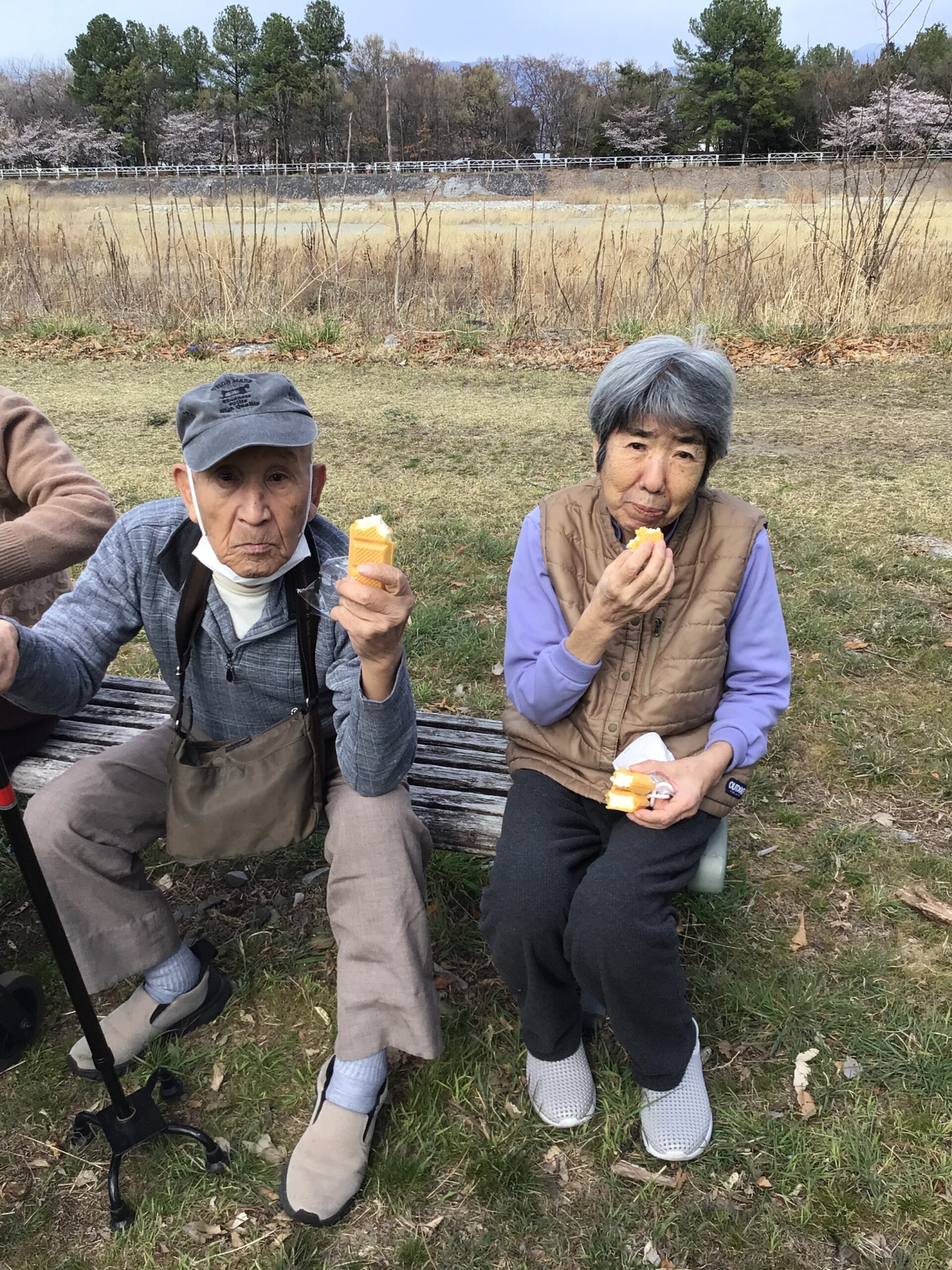 少し桜並木を歩き、途中でおやつタイム⏱